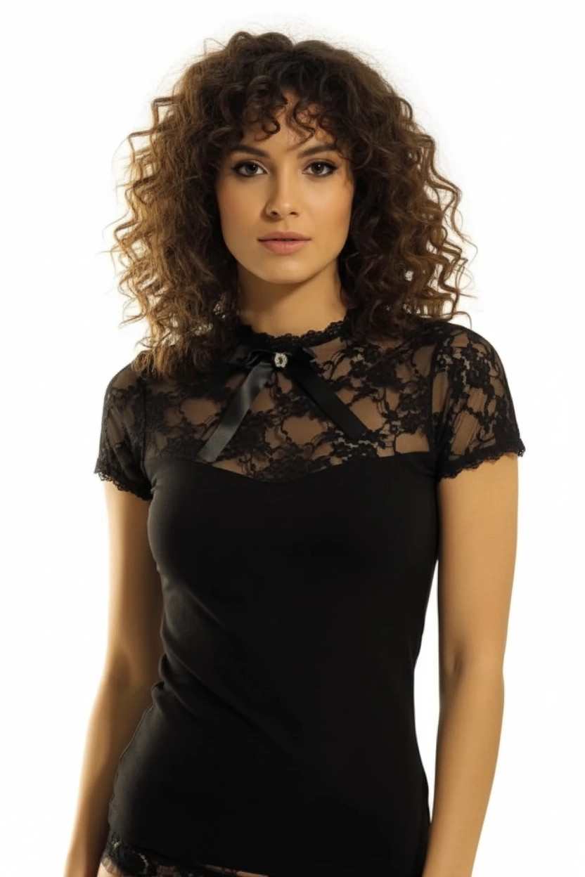 2140 GENİŞ DANTELLİ K.KOLLU ELASTANE, Bluz, Kiviva
