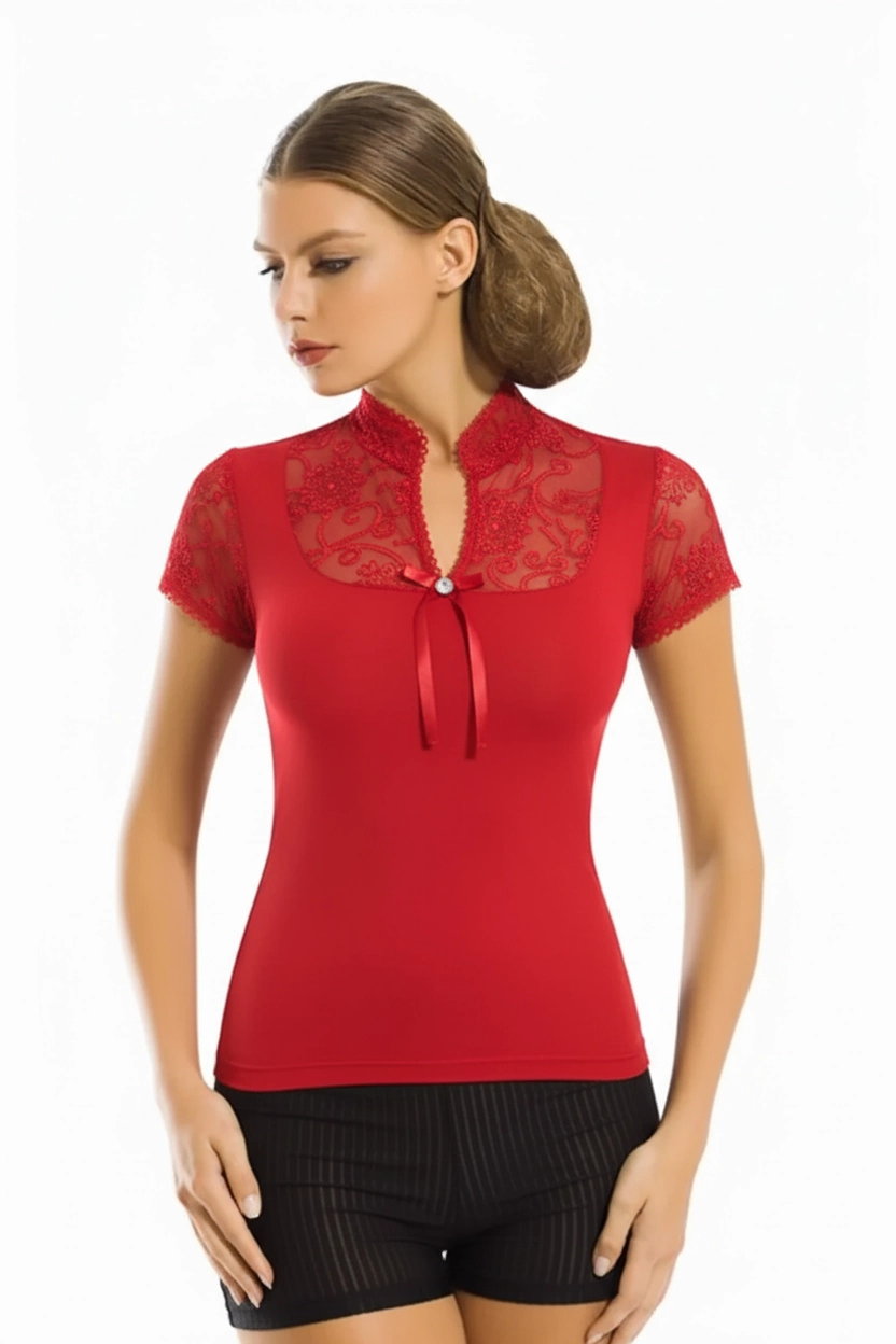 Berrak Dantelli Yarım Kollu Kadın Bluz Elestan