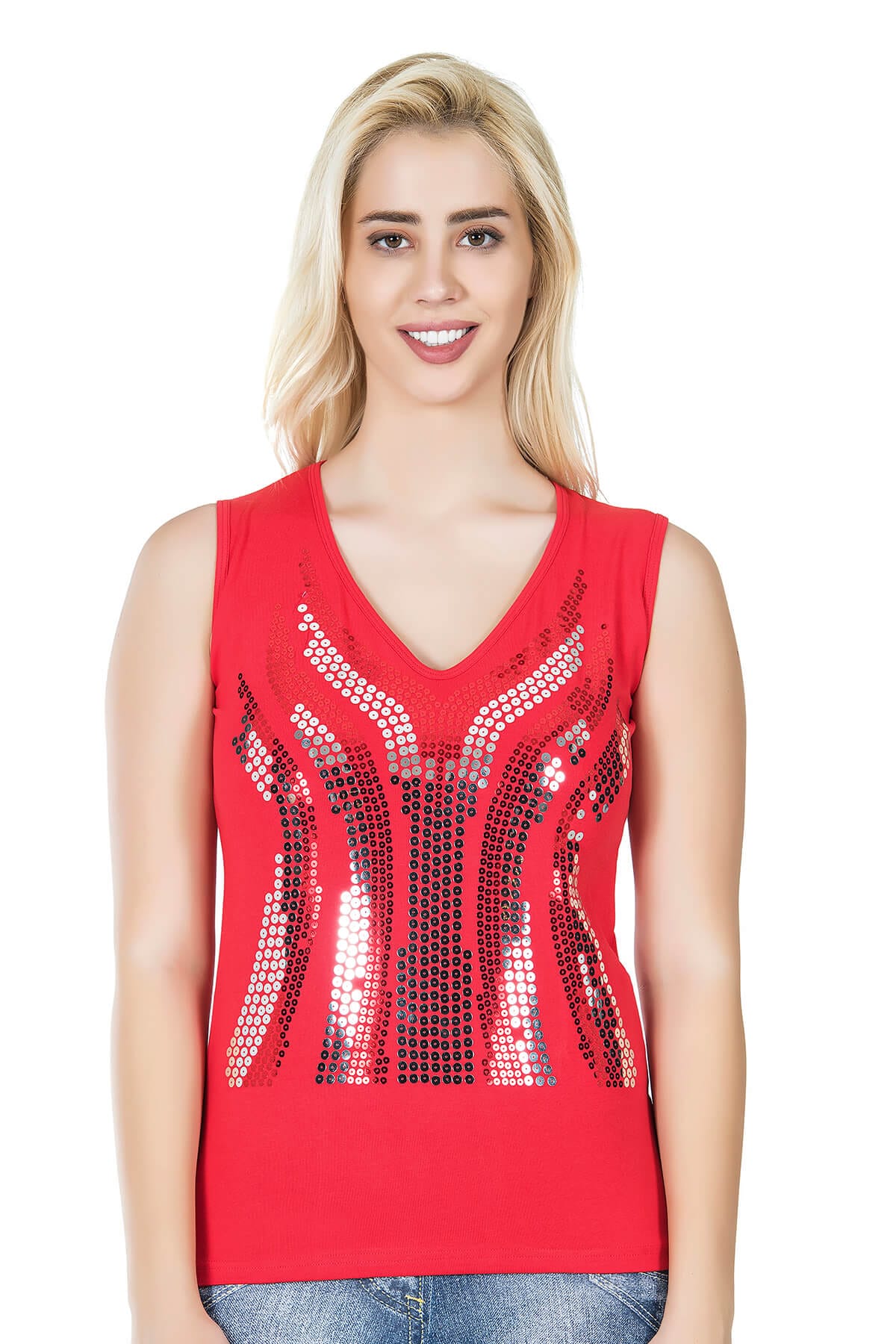 Pul işlemeli tasarımıyla şık bir görünüm kazandıran yeni sezon kadın tişört modelidir.
