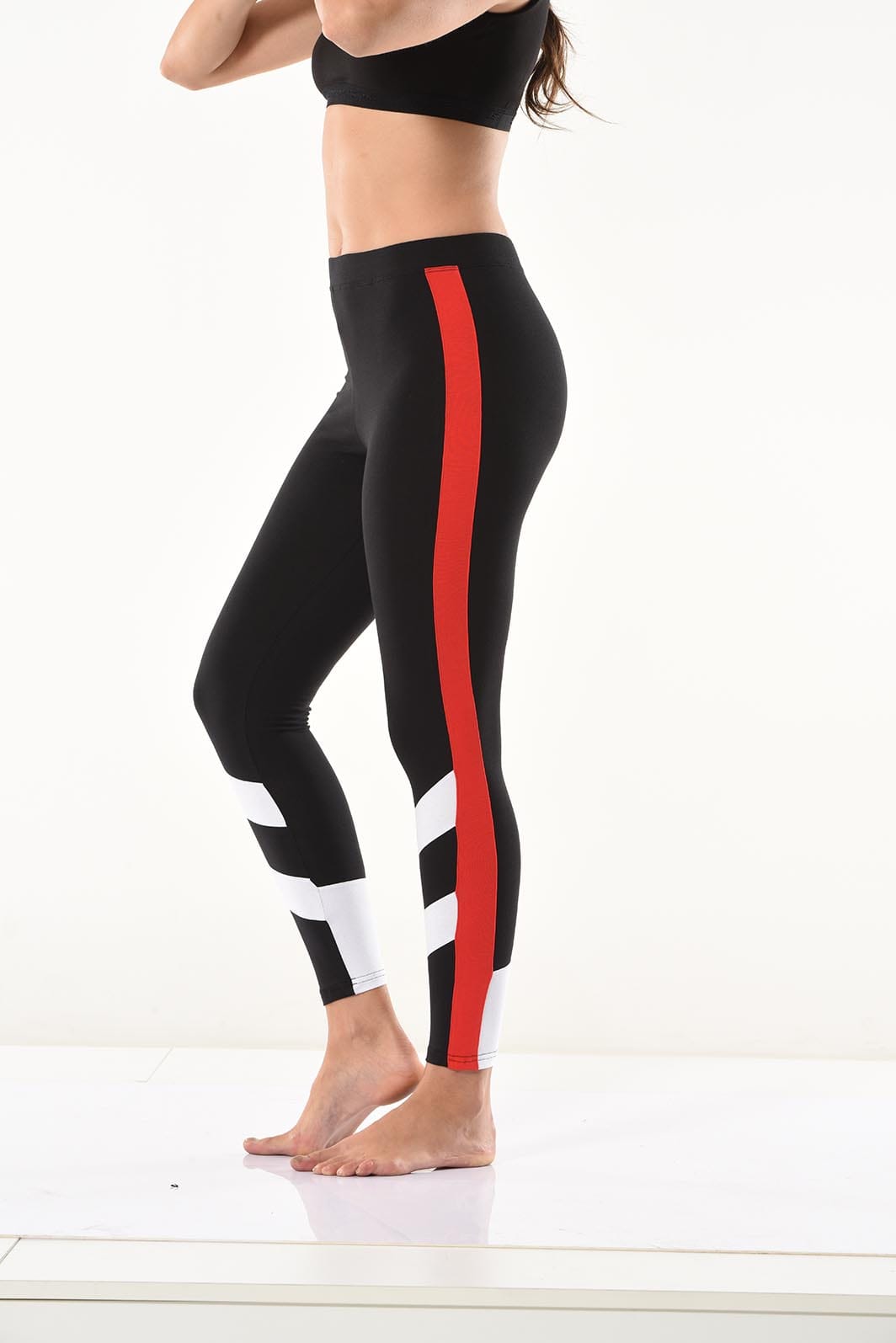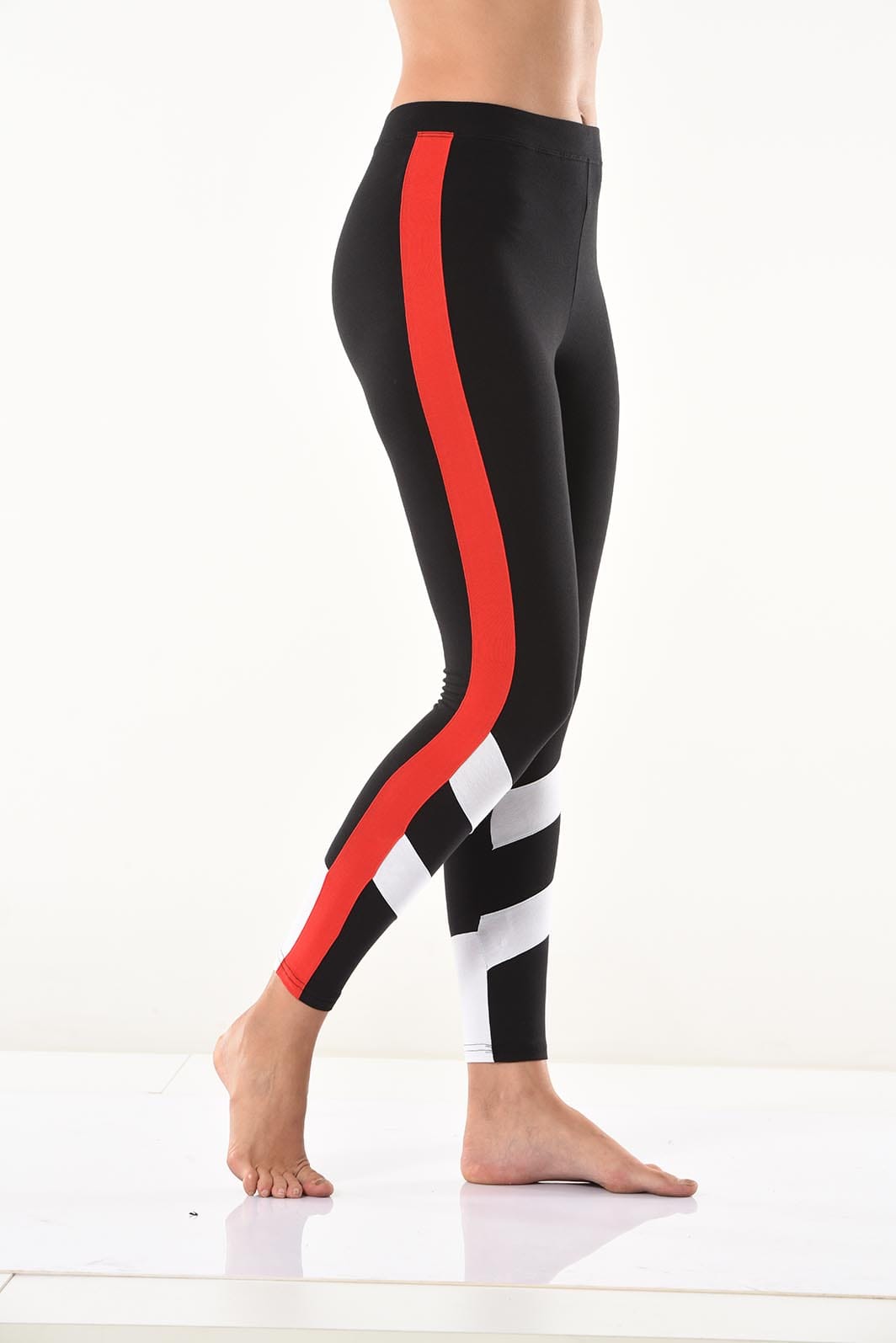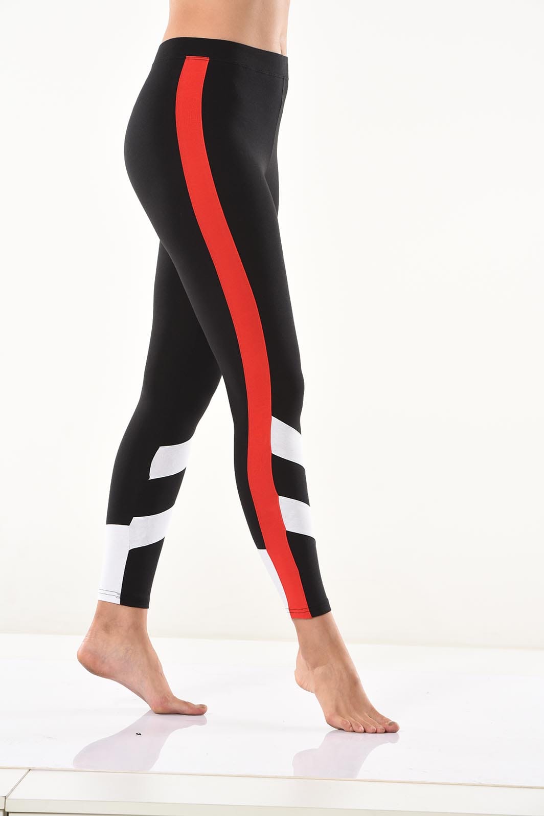 Yeni sezon şerit detaylarıyla şık bir görünüm kazandıran kadın tayt modelidir.