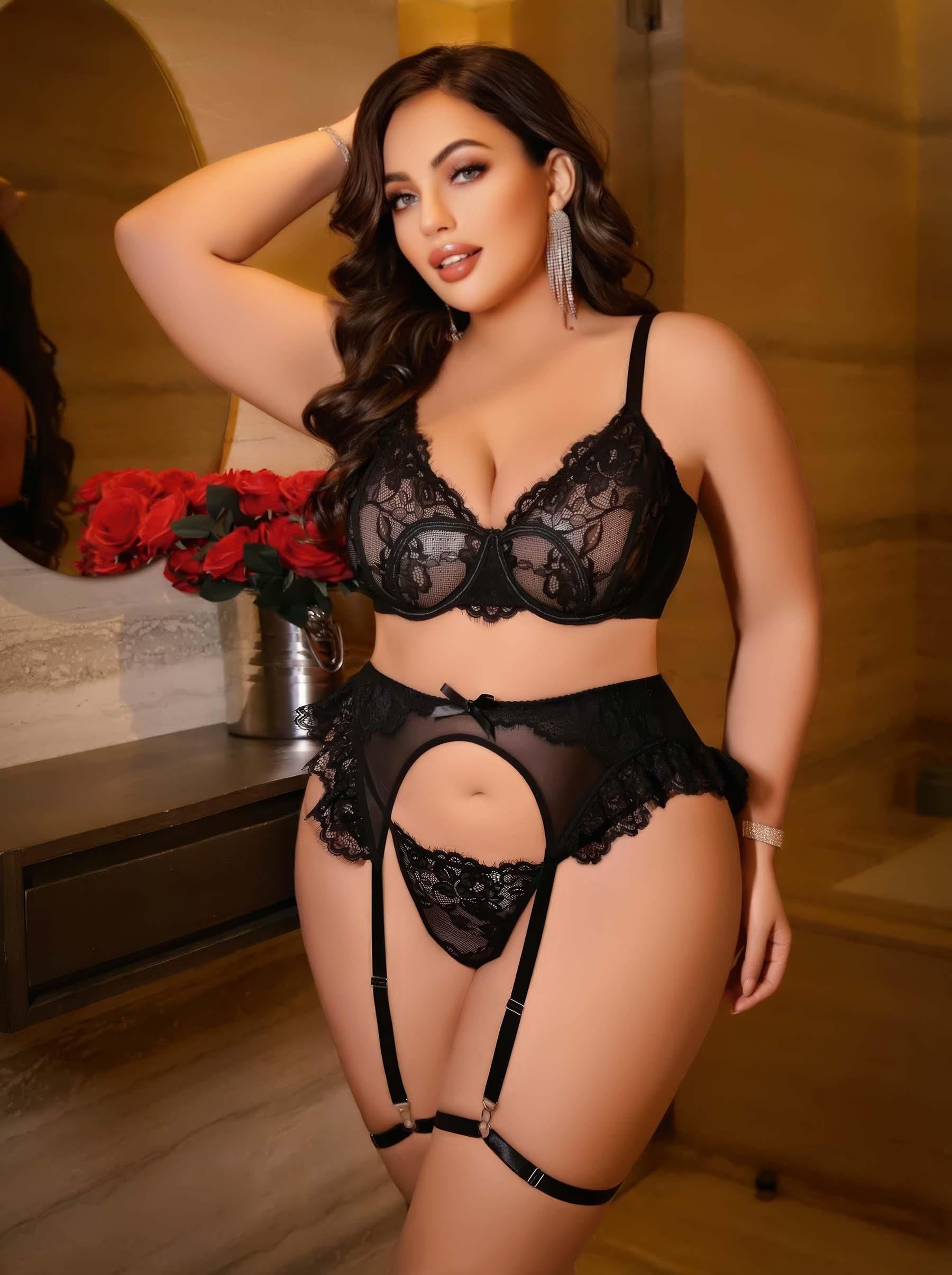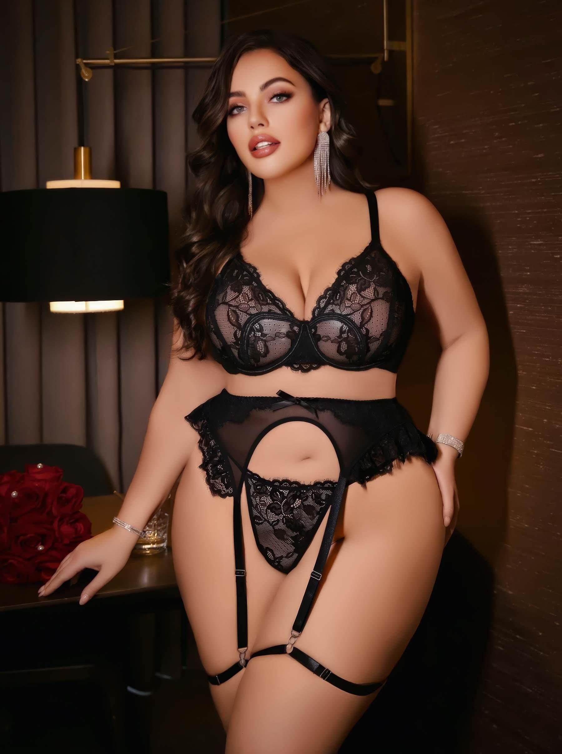 Kadın Büyük beden dantel detaylı fantezi jartiyer takımı 8010