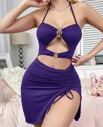 Kadın Mor Fantezi Elbise Önden Büzgü Dekolteli 5083
