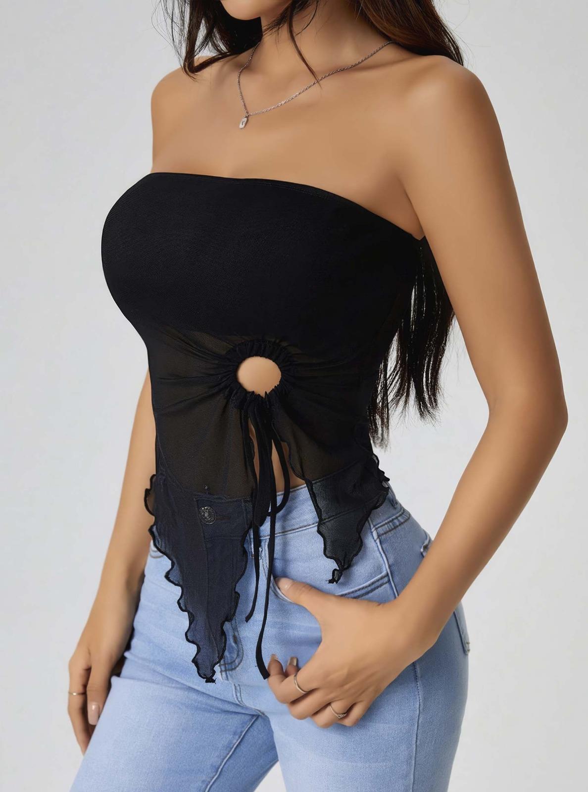 Kadın Siyah Crop Önden Halka Büzgü detaylı 5094, Crop, Kiviva