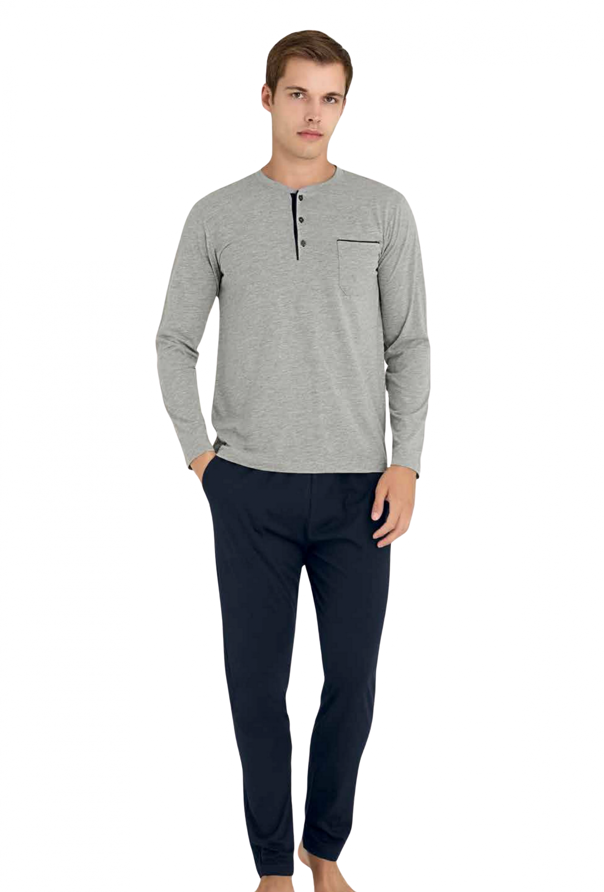 Uyku konforunuza önem veren erkekler için şık ve rahat bir seçenek olan KLY Midi Yaka Erkek Uzun Kollu Kışlık Pijama 9250, kaliteli kumaşı ve şık tasarımı ile öne çıkıyor.