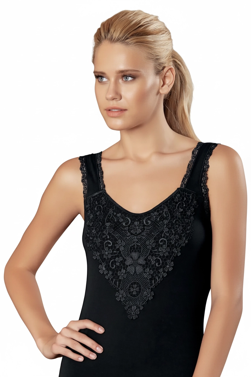 Şahinler Güpürlü Likralı Atlet B153, Yoncatoptan markasının özenle tasarladığı bir iç giyim ürünüdür. Kadınların rahatlıkla tercih edebileceği bu atlet, hem şık hem de konforlu bir kullanım sunar.